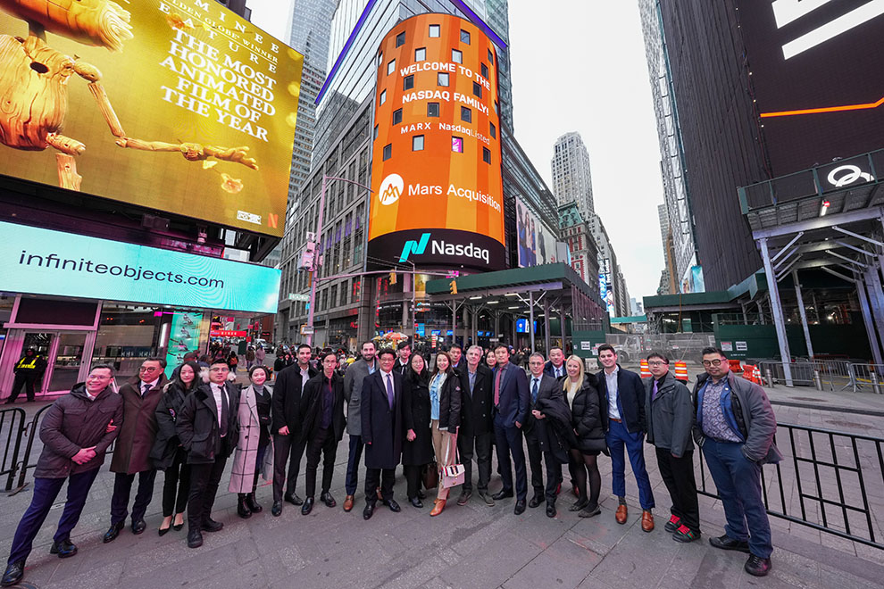 美东时间,2023年3月1日,由财富指数辅导的SPAC公司——火星并购公司(Mars Acquisition Corp. )在纳斯达克举行了盛大的敲钟仪式,火星公司董事、高管及参与此次IPO的财富指数团队成员、律师、审计师等机构20多名代表参加了仪式。